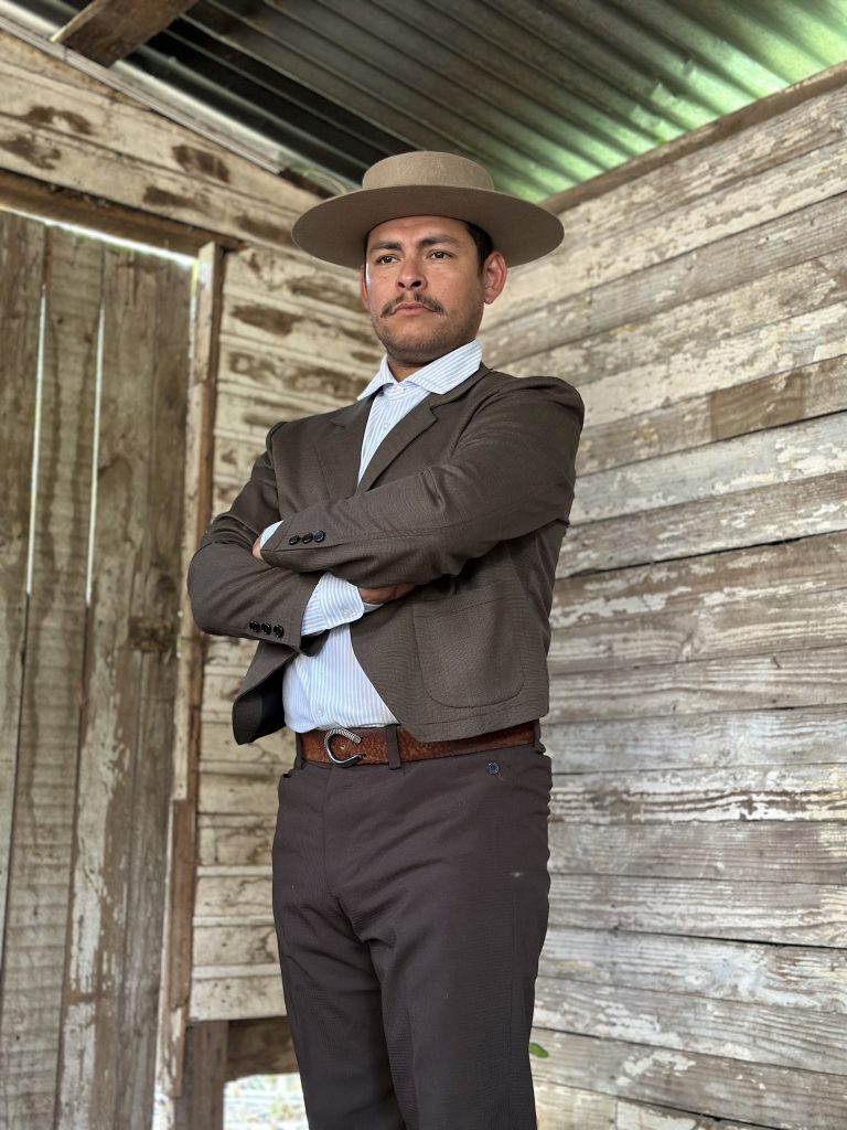 Chaqueta de huaso confeccionada con tela Bellavista Oveja Tomé, elaborada en 100% lana. Destaca por su calidez, resistencia y el sello tradicional. Un diseño auténtico y duradero, ideal para el campo y celebraciones del mundo huaso.