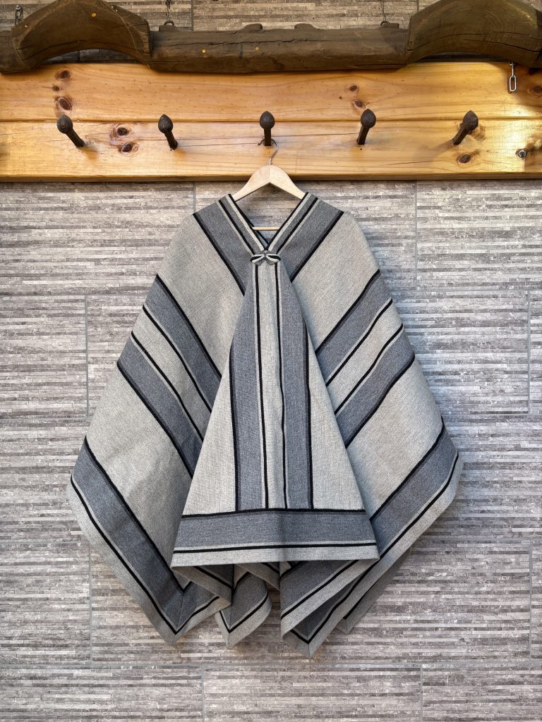 Poncho corralero, confeccionado en telar artesanal con lana 100% Oveja